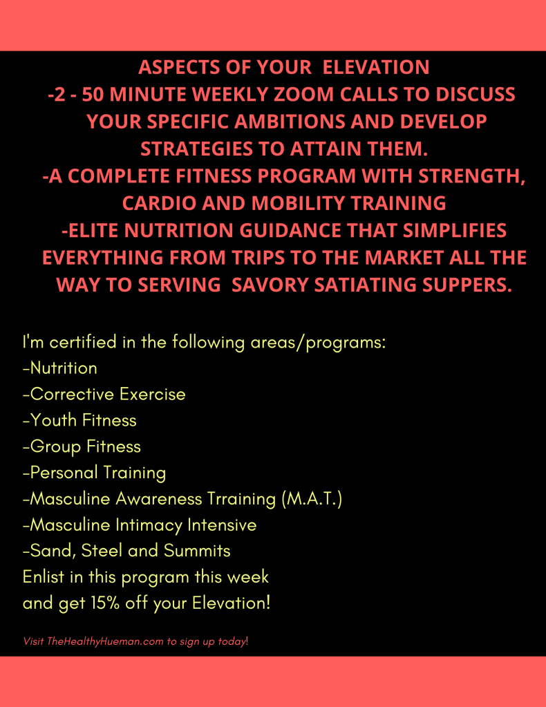 Your journey to absolute elevation in all areas of Hueman existence is a 10-week process of undeniable progress. Before you invest in another gym membership or wellness retreat invest in your approach to being a healthy Hueman. Once you understand how it feels to be your most energized and resilient self you will not lose sight of the principles and practices that helped you ascend to the top tier.